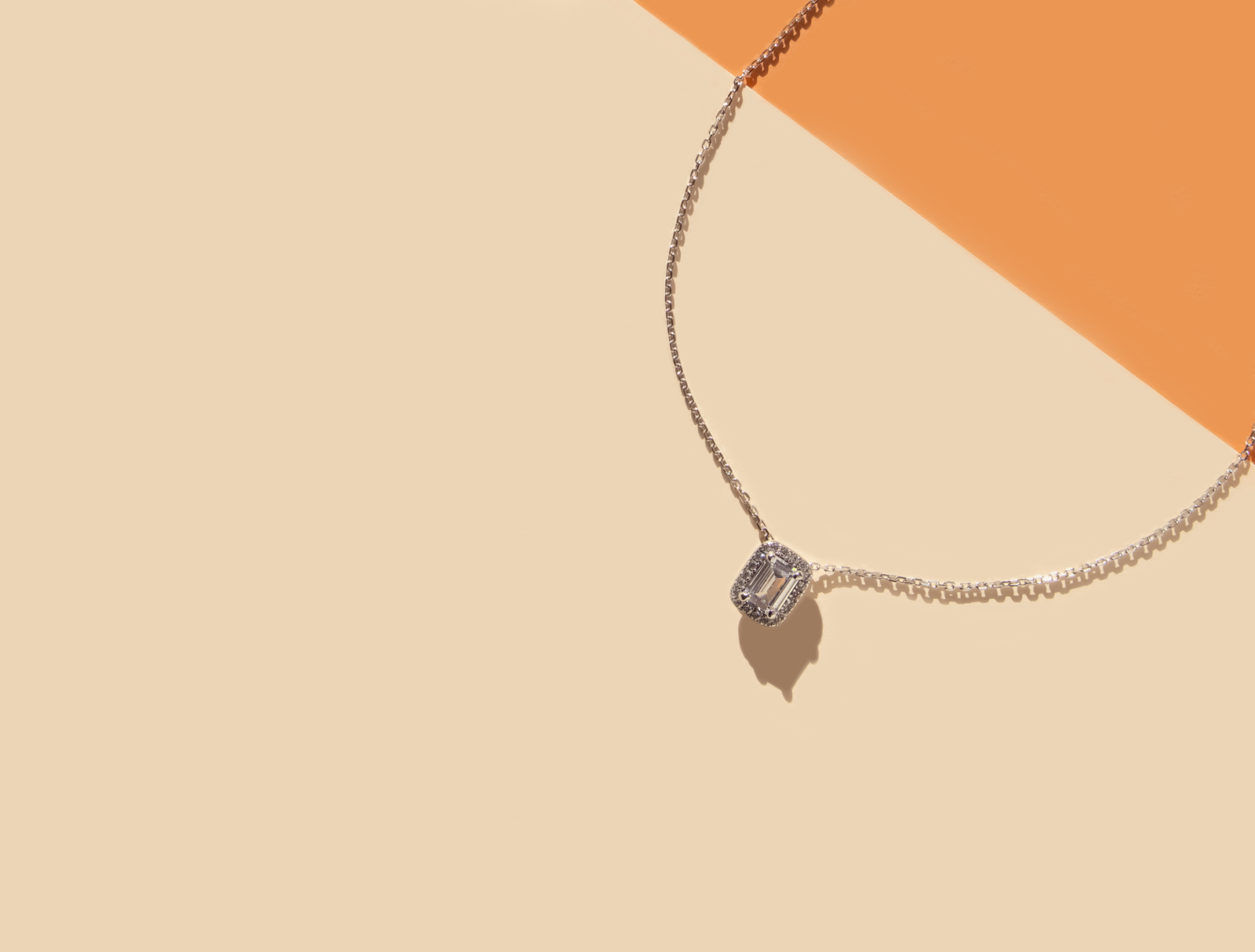925 Sterling Silver Rhodium-Plated Pendant Necklace featuring a dazzling emerald-cut cubic zirconia centerpiece surrounded by a halo of brilliant pavé stones for timeless elegance